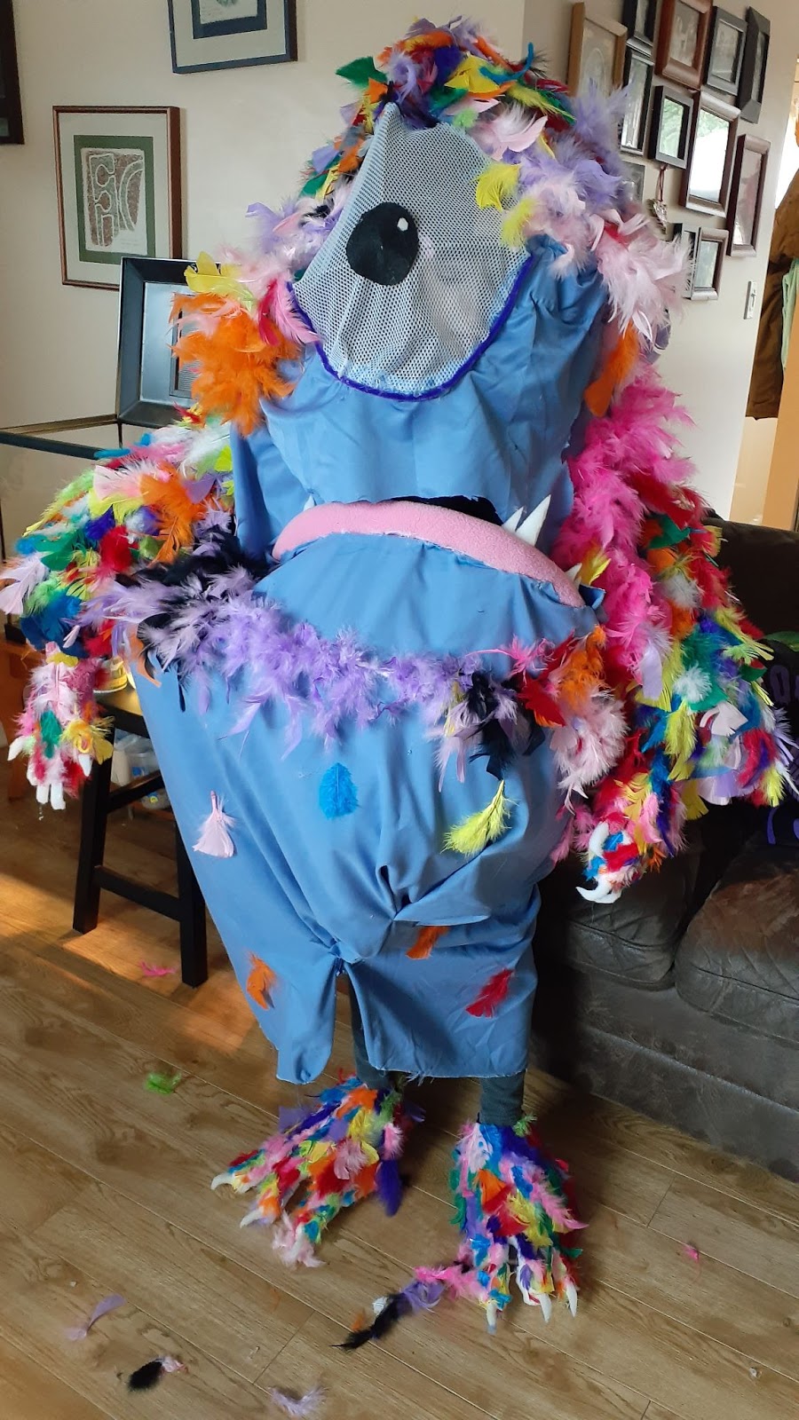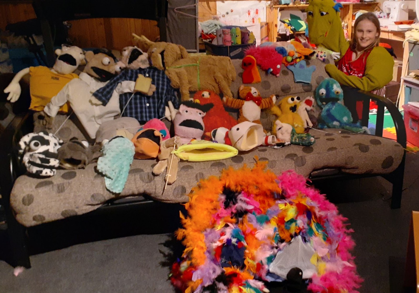 Since Camp Puppet, Jenna has created over 50 puppets, some were made from paper towel rolls, bath towels, thrift store blankets and now some from professional materials where Adam suggested getting puppet supplies from. She even made a life size puppet for her Halloween costume! It was a hit on the streets of our neighbourhood.