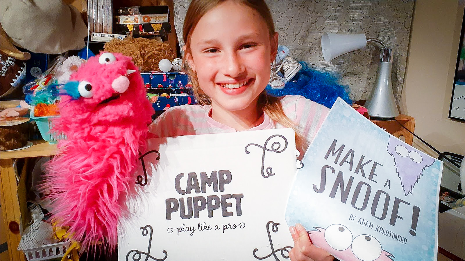 “Mr. Adam”, as many of the mini-puppeteers called him, mailed a Camp Puppet Kit to each student. Everything Jenna needed for all the week-long camp festivities. Even if Jenna could create her own Snoofs already, the special one sent in the kit was sewn by her guru, Mr. Adam.